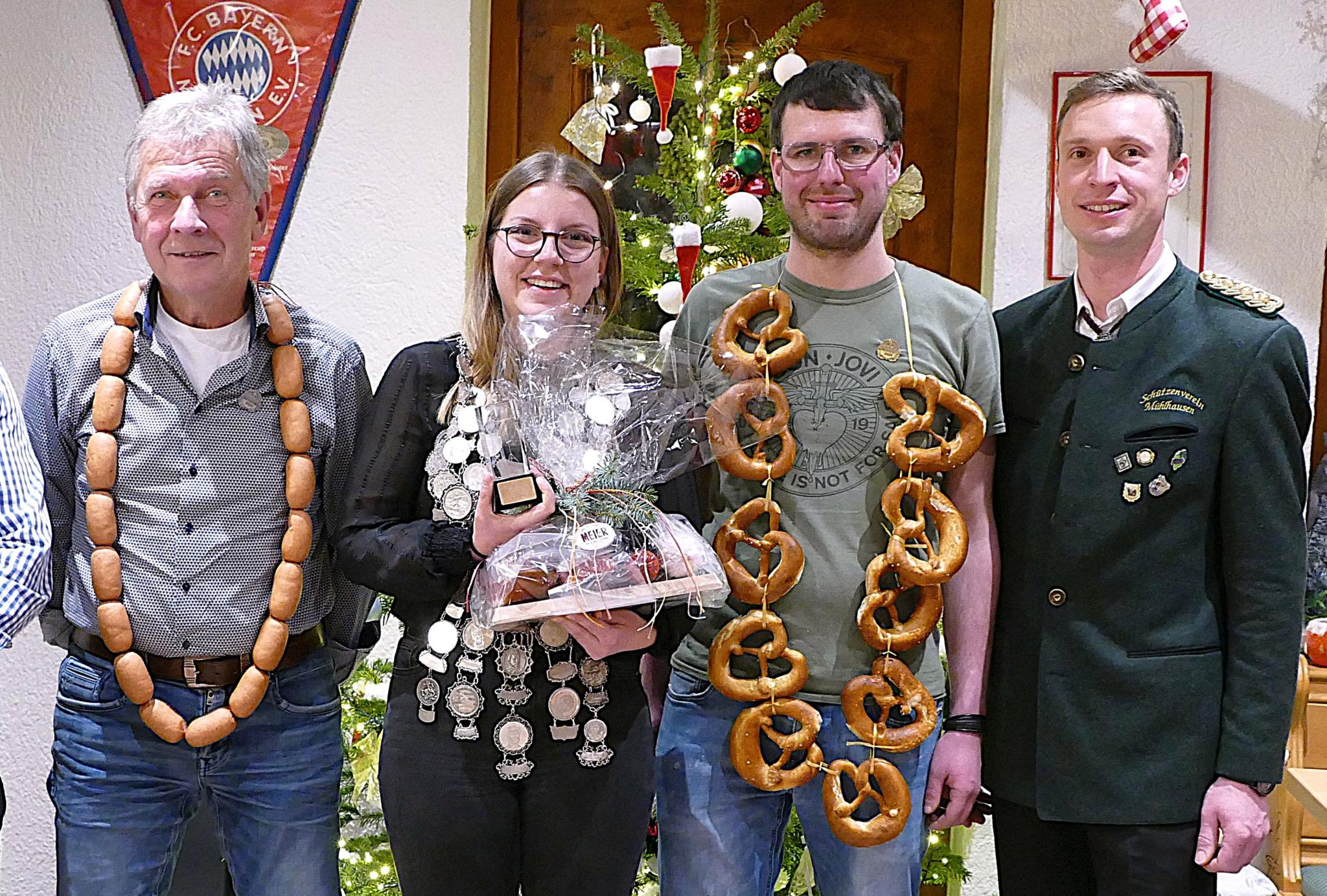 Heuer hatte die Christbaumversteigerung der Mühlhausener Schützen etwas länger gedauert. Traditionell werden bei der Veranstaltung kurz vor Weihnachten die erfolgreichsten Schützinnen und Schützen der Schießsaison geehrt. Heuer kam eine überraschende Ehrung dazu.