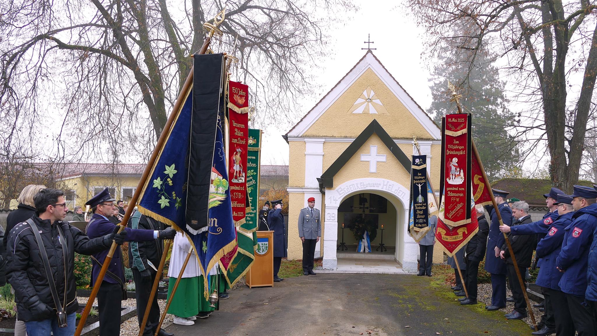 Es war wohl das letzte „Ausrücken“ der Mühlhausener und Geibenstettener Vereine mit ihrer Fahne in diesem Jahr. Mit dem Einzug in die Pfarrkirche zum Gottesdienst am vergangenen Sonntag zeigten sie ihre Verbundenheit mit dem Volkstrauertag, einem staatlichen Gedenktag zur Erinnerung an die Opfer von Gewalt und Krieg weltweit.