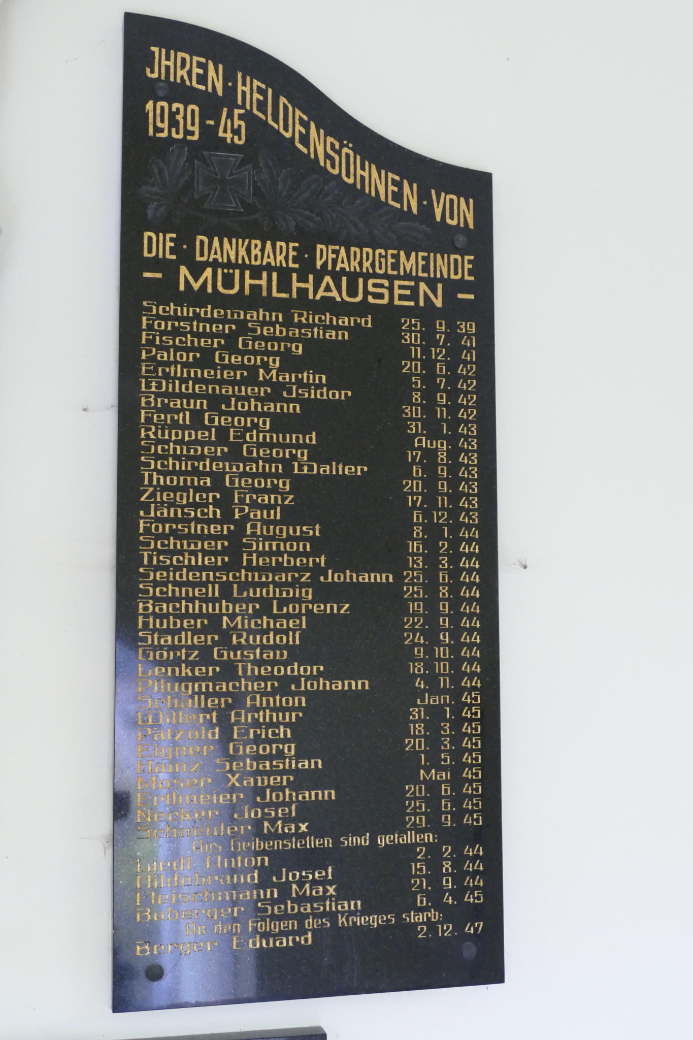 Beim Volesen der Namen der 31 Gefallenen, vier getöteten Zivilisten aus dem ersten Weltkrieg, der 38 Gefallenen, einem Vermissten aus dem zweiten Weltkrieg und der 33 Vermissten wurde deutlich, wie stark die Bevölkerung von Mühlhausen und Geibenstetten in den beiden Weltkriegen betroffen war.