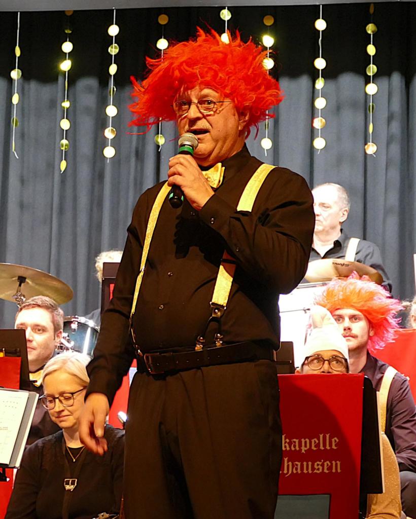 Kurz vor der Pause servierte Florian auf einem Silbertablett die 4. CD der Blaskapelle Mühlhausen. Diese wurde ein Jahr lang aufgenommen und gibt es ab sofort zu einem Preis von 15 Euro beim „Hosen-Hans“ zu kaufen.