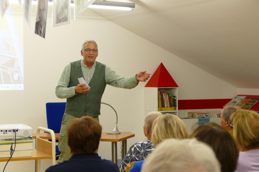Anlässlich des 50-jährigen Jubiläums „ihrer“ Bücherei bat Leiterin Marianne Sieber fünf Mühlhausener zu erzählen, wie sich ihr Dorf in der gleichen Zeit geändert hat. So mancher jüngerer Zuhörer staunte über die lustigen Erinnerungen aus der „guaden alten Zeit“.