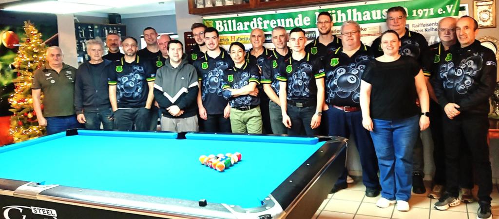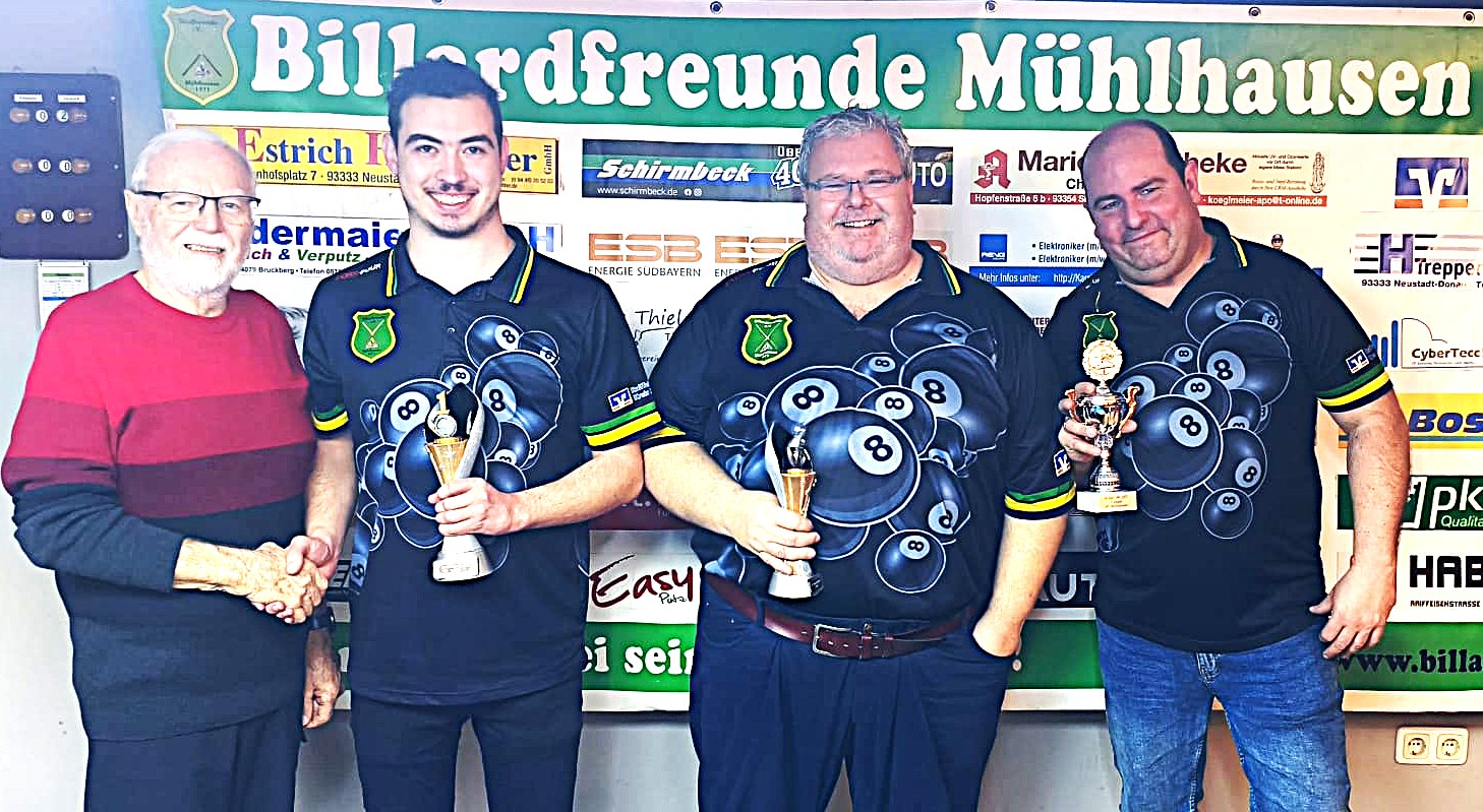 Zum Auftakt ins neue Billard-Jahr 2026, luden die Billardfreunde Mühlhausen ihre Mitglieder zur traditionellen 8-Ball Vereinsmeisterschaft ins Billardheim ein. Zum Jahresende 2025 wurde noch die Vereinsmeisterschaft im 14/1 Endlos ausgetragen, die seit 2020 erstmals wieder stattfand und endete mit der Weihnachtsfeier. 19 Teilnehmer und Teilnehmerinnen hatten sich zur ersten Vereinsmeisterschaft im neuen Jahr angemeldet. Im Schweizer System nach vorheriger Auslosung und fünf Runden, standen nach zehn Stunden Spielzeit die Sieger fest. Vereinsmeister wurde Robin Scharf mit 8:2 (8) vor Michael Reinhold 8:2 (7) und Vorjahressieger Michael Konrad 8:2 (6) Der 4. Platz ging noch an den Lokalmatador Dieter Schuster 8:2 (5). Nach Beendigung des Turniers, fand noch die Siegerehrung der 14/1 Vereinsmeisterschaft statt, die nicht an einem Tag, sondern im Zeitraum von Juni bis Dezember ausgetragen wurde. Hier holte sich Robin Scharf den 2. Meistertitel, vor Dieter Schuster und Michael Konrad. 1. Vorsitzender Anton Fischer nahm die Siegerehrung der zwei Turniere vor und bedankte sich bei allen Teilnehmern und wies auf den Punktspielstart im neuen Jahr bereits am 10. Januar hin.