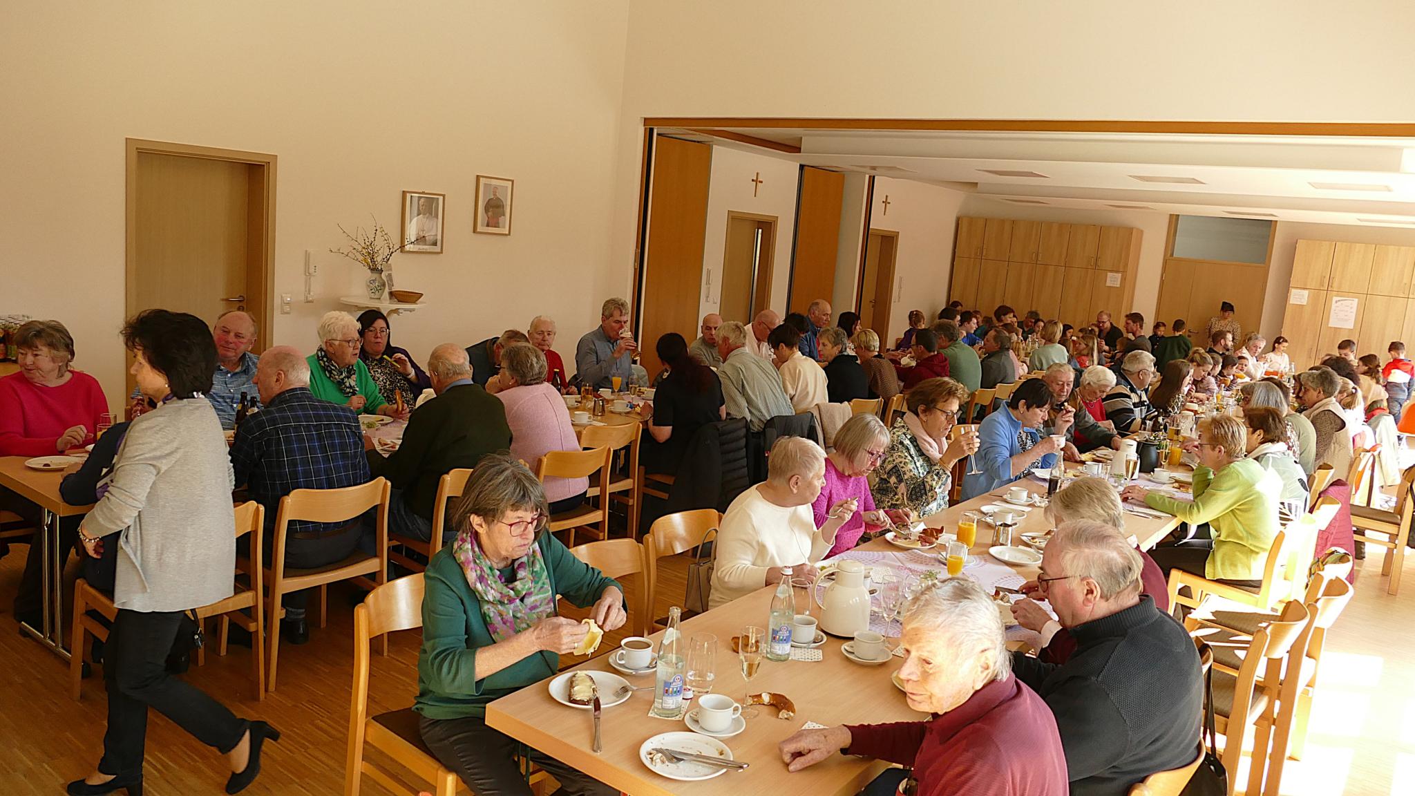 Der Pfarrgemeinderat St. Vitus lud nach dem Familiengottesdienst, der wieder von der Kinderschola musikalisch gestaltet wurde, zu einem gemeinsamen „Kirchenfrühstück“ ein. Schnell füllte sich das Pfarrheim mit Jung und Alt bis auf dem letzten Platz.
