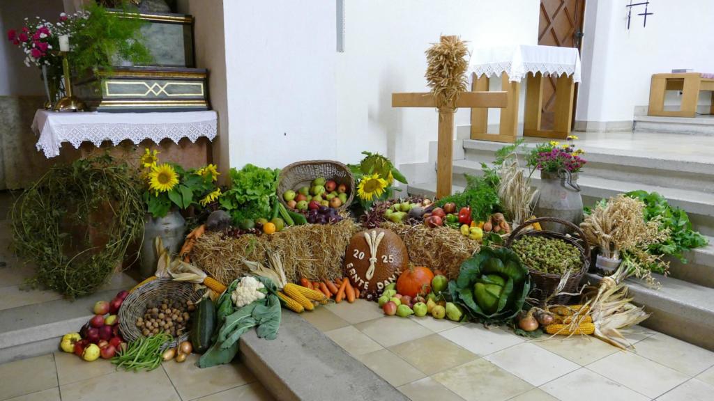 Im Rahmen einer Erntedankandacht versammelten sich die Mädchen und Burschen der Katholischen Landjugend am Abend um den Altar, um das Erntedankfest zu feiern. Marie Sigl erinnerte daran, dass wir wissen „nichts wächst von selbst. Wir Menschen können säen, pflanzen, pflegen und ernten. Aber dass aus einem Samenkorn ein Ährenfeld wir – das bleibt ein Wunder Gottes.“