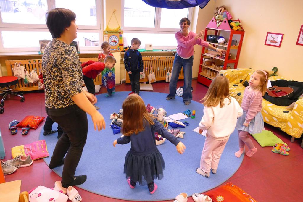 „Warmreiben, Socken anziehen und Aufwärmen mit Tanzen, Laufen, Hin- und Herspringen, vertrieb die Kälte sehr schnell. „Jetzt haben wir ganz viel Kraft und Energie“ stellte Bettina Sift fest und entließ die Kinder nacheinander mit einem „Daumen hoch“ und dem Wunsch für „einen schönen Tag“ in die Spielbereiche der Igel-Gruppe.