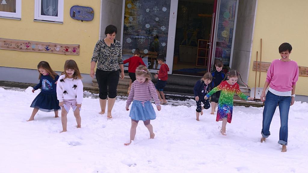 Das aktuelle Winterwetter mit Schnee bringt Abwechslung in den „Kneipp-Alltag“ des Kindergarten St. Franziskus, der seit Juli 2023 an der „Kneipp-Kita Studie Bayern“ der Universitäts-Klinik Regensburg über die Auswirkung von Kneipp-Anwendungen auf die Gesundheit von Kindern teilnimmt. „Zu unserem 40. Geburtstag streben wir als nächsten Schritt die Zertifizierung als Kneipp-Kindergarten an“ so Bettina Sift vom Kindergarten-Team.