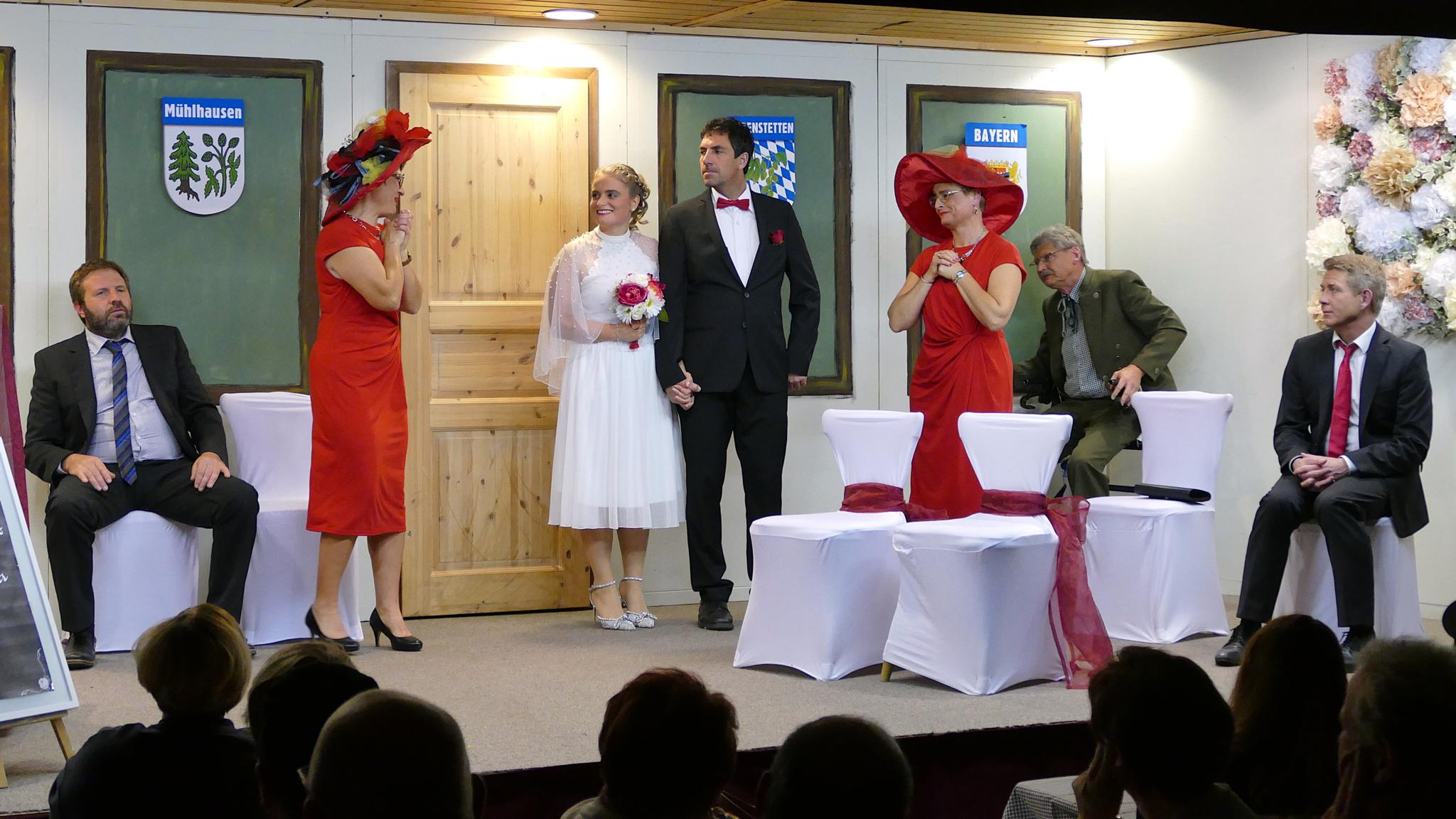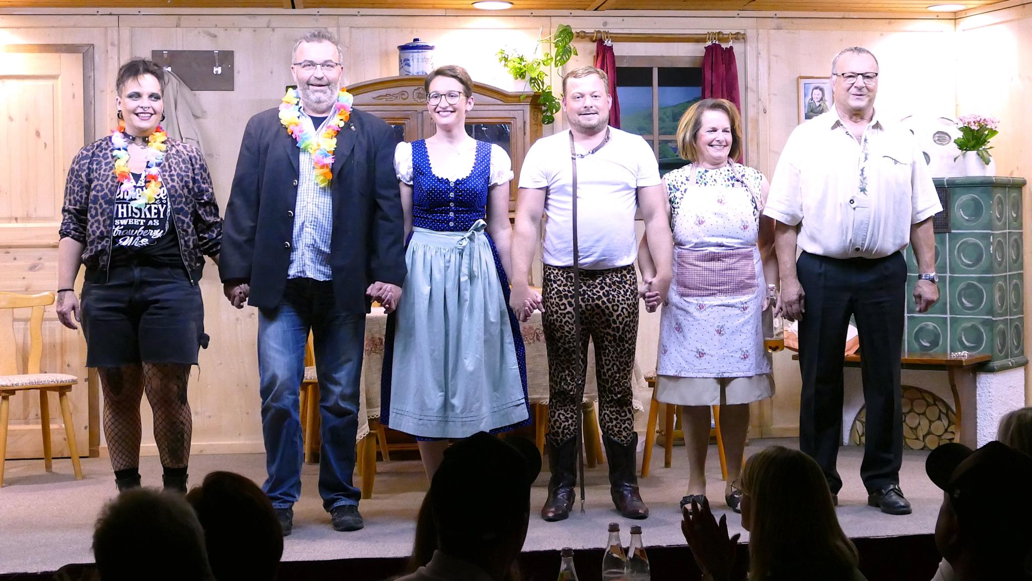 War es der „Startpilot“, den die Schauspieler kurz vor dem ersten Einakter an die Gäste verteilten oder doch das forsche Auftreten der beiden gleich gewandeten Mütter vom Brautpaar Heinz und Lisa, das die Zuschauer zum Lachen brachte? Beinahe hätten sie die Hochzeit platzen lassen, wenn nicht der „demente“ Opa ein Machtwort an deren Ehemänner gerichtet hätte.