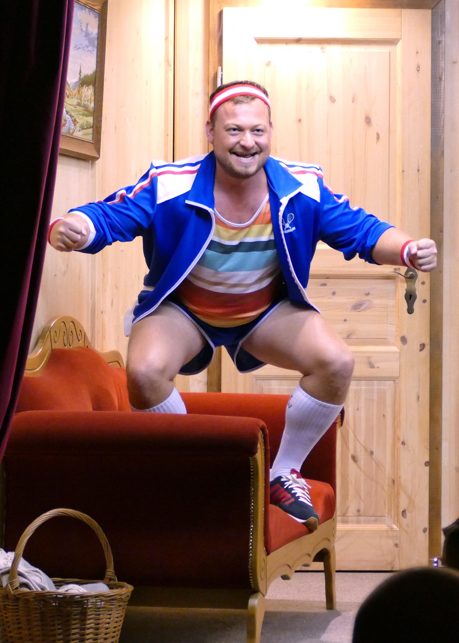 Die Bühne wurde in zwischen vom Standesamt zur Bauernstube, in der Josef Meilinger ein etwas „unappetitliches“ Dopingmittel für seine „Rennsau“ Berta mixte. Versehentlich hat aber der sportliche Freund seines Bruders die ganze Flasche ausgetrunken. Das hatte entsprechende Folgen.