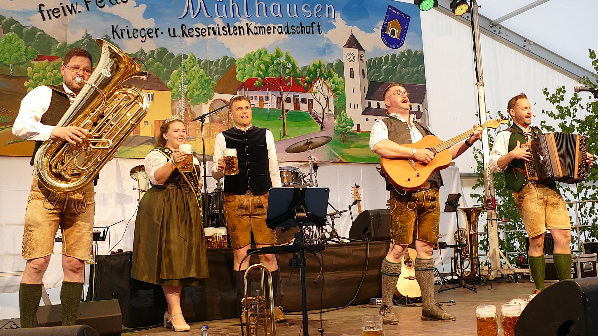 Zünftige „Blasmusi“ und „freches bayerisches Kabarett“ aus dem Bayerischen Wald sorgten für einen fulminanten Auftakt zum 150-jährigen Gründungsfest der Freiwilligen Feuerwehr und der Krieger- und Reservistenkameradschaft in Mühlhausen.