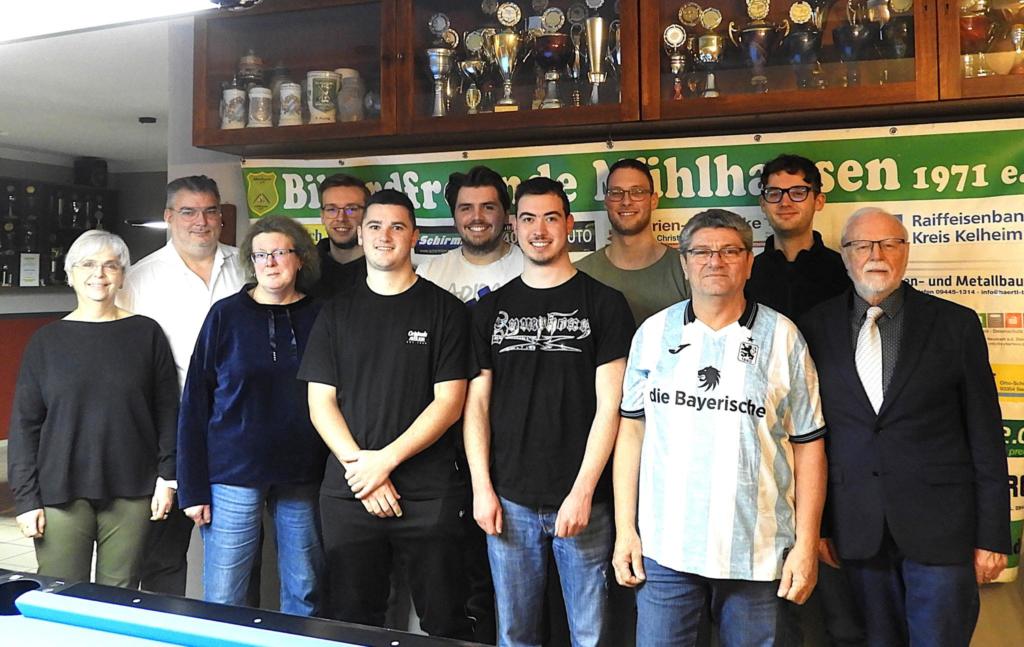 Die Vorstandschaft nach den Wahlen bei der Jahreshauptversammlung der Billardfreunde Mühlhausen mit dem wiedergewählten 1. Vorsitzenden Anton Fischer (r) sowie dem 2. Vorsitzenden Martin Morweiser (zweiter v. links).